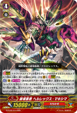 Take Kagero and Narukami for example. How are they different? They're both heavily rooted in the retire mechanic. Recently, Narukami have started to gear themselves more towards binding cards (but that itself starts treading into Nubatama territory), and the only real difference between them and Kagero are that most of Narukami's cards are retire and beatdown, whereas Kagero are more retire and restand (if you're playing an "Overlord" deck). In all honesty, these two clans could be combined into a single one and the game would be no worse for the wear (Narukami only ever came to be because Bushi wanted to stop supporting Kagero, anyway). For the purpose of this article, I'll call this combined clan "Control". Gear Chronicle could be included in this as well, as their "Go to the bottom of the deck" mechanic is just an upgraded form of retire, and the rest of their clan is nothing but Silent Tom wannabe's and other forms of guard restriction, which is just cancerous to have en masse.
